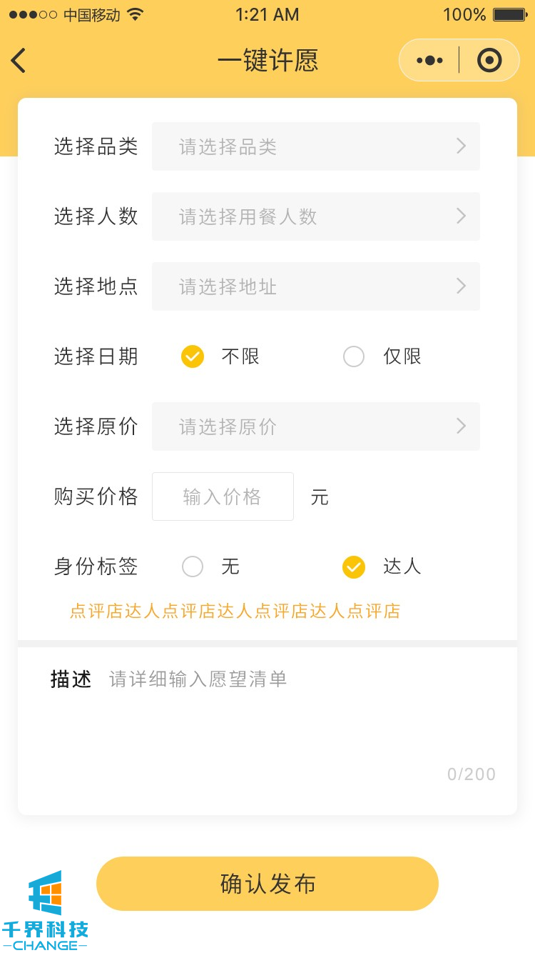 許愿餐小程序
