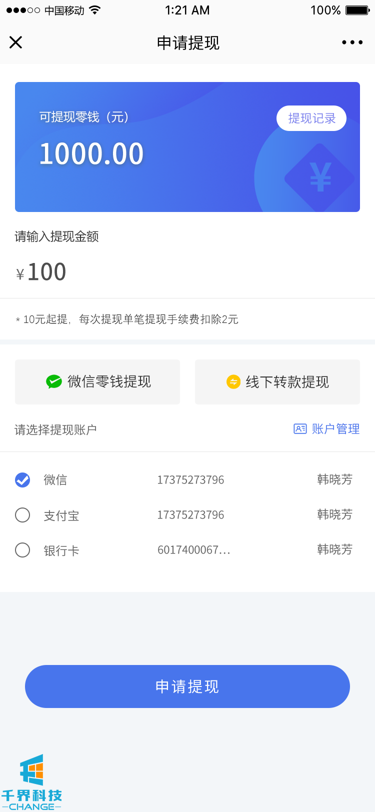 項目名稱(chēng):話(huà)費充值分銷(xiāo)小程序 項目類(lèi)型:小程序