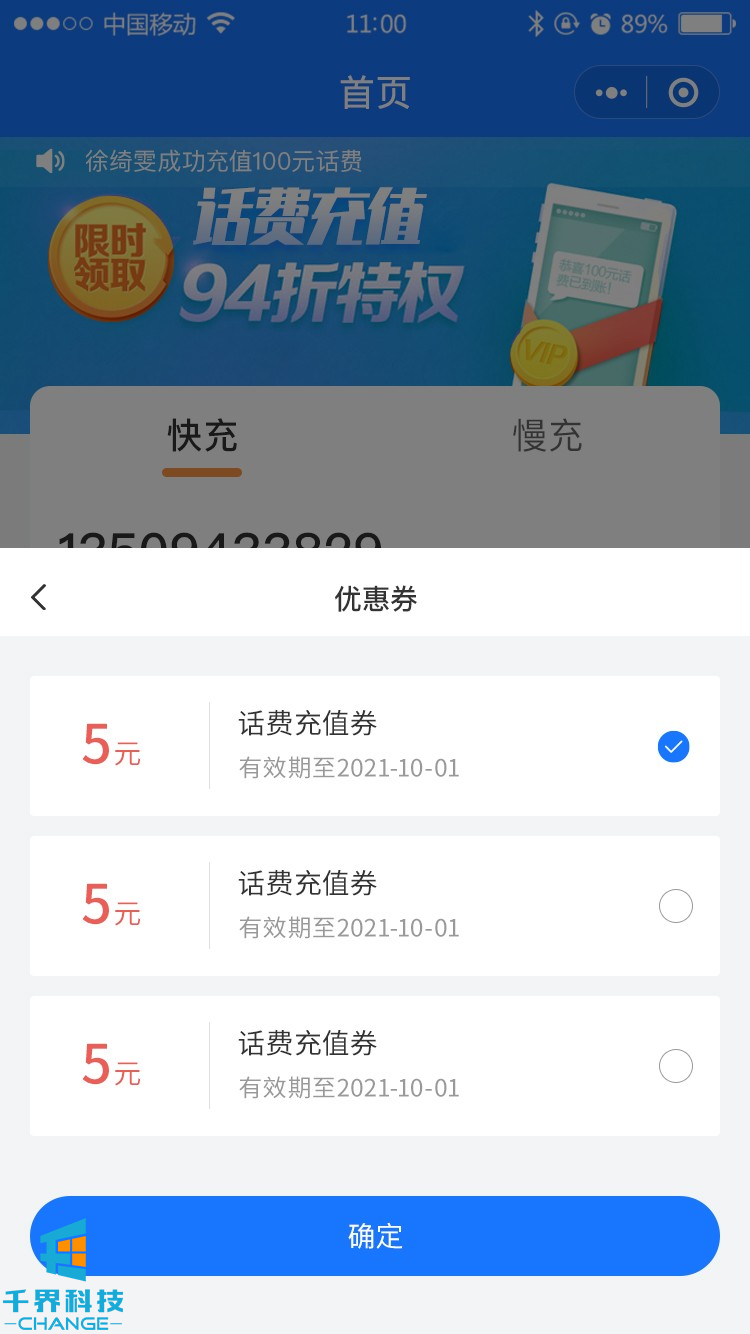 該項目為話(huà)費充值分銷(xiāo)小程序,包含慢/快充、有分銷(xiāo)、優(yōu)惠券等功能